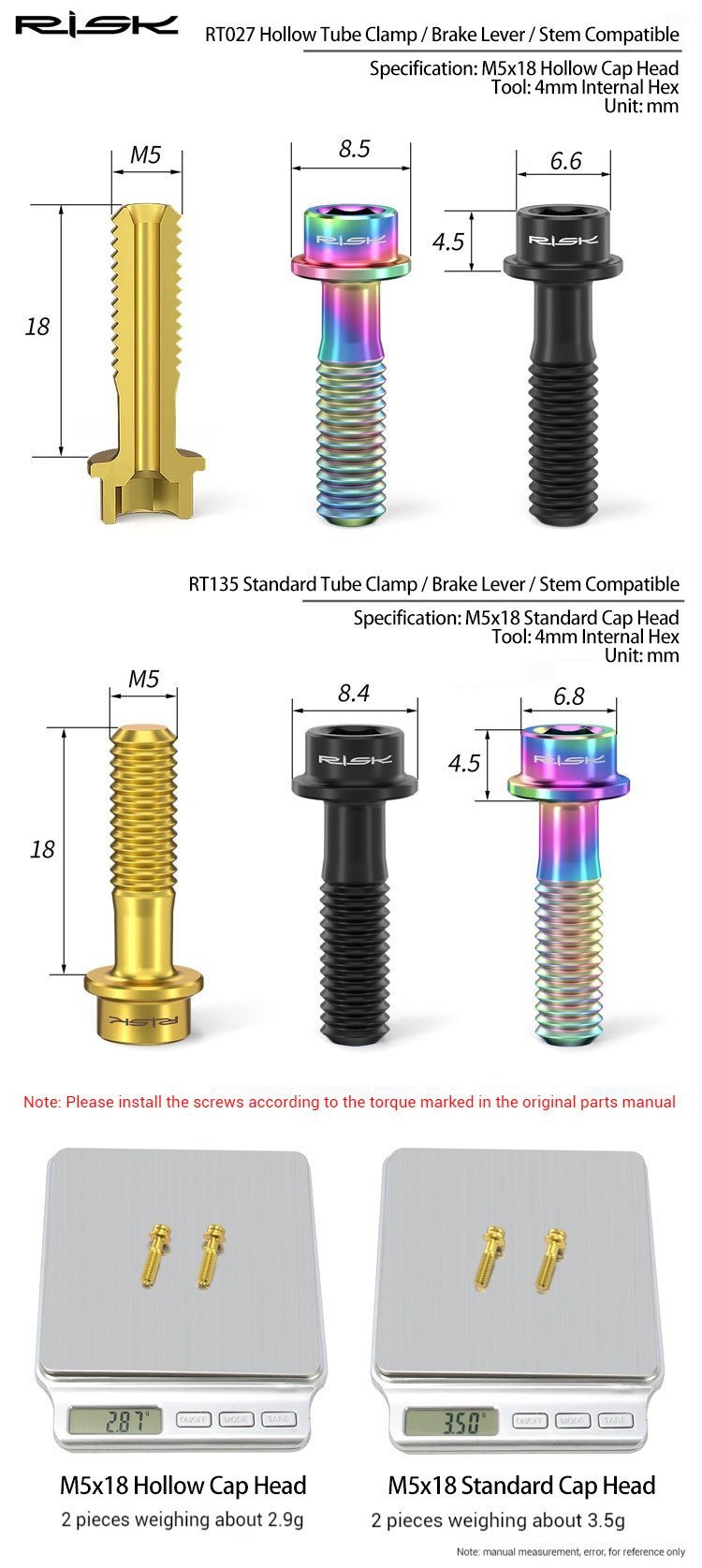M5*18 Hollow: 2 pcs/set, branded bagged, net weight approximately 2.9g, gross weight approximately 7.6g