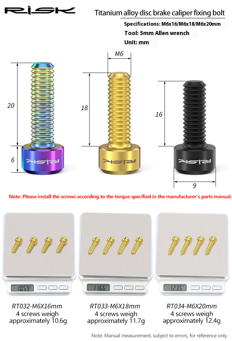 RT033 – M6X18mm, 4 pieces including packaging: approximately 15.6g