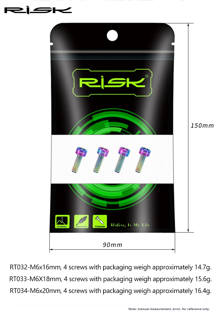 RT032 – M6x16mm, 4 pieces including packaging: approximately 14.7g