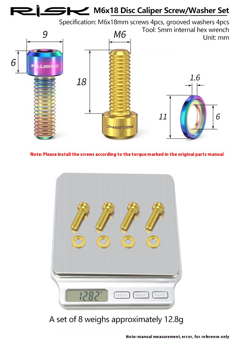 Packaging: 4pcs M6x18 screws + 4pcs countersunk washers