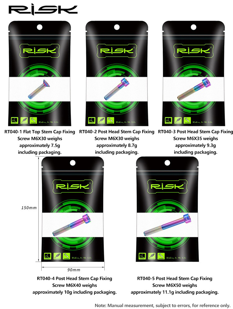 RT040-4 Stem Head Stem Cap Fixing Screw M6X40, including packaging weighs approximately 10g