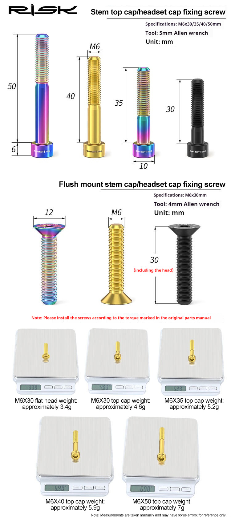 Stem Cap / Headset Cap Fixing Screws:M6x30/35/40/50mm
