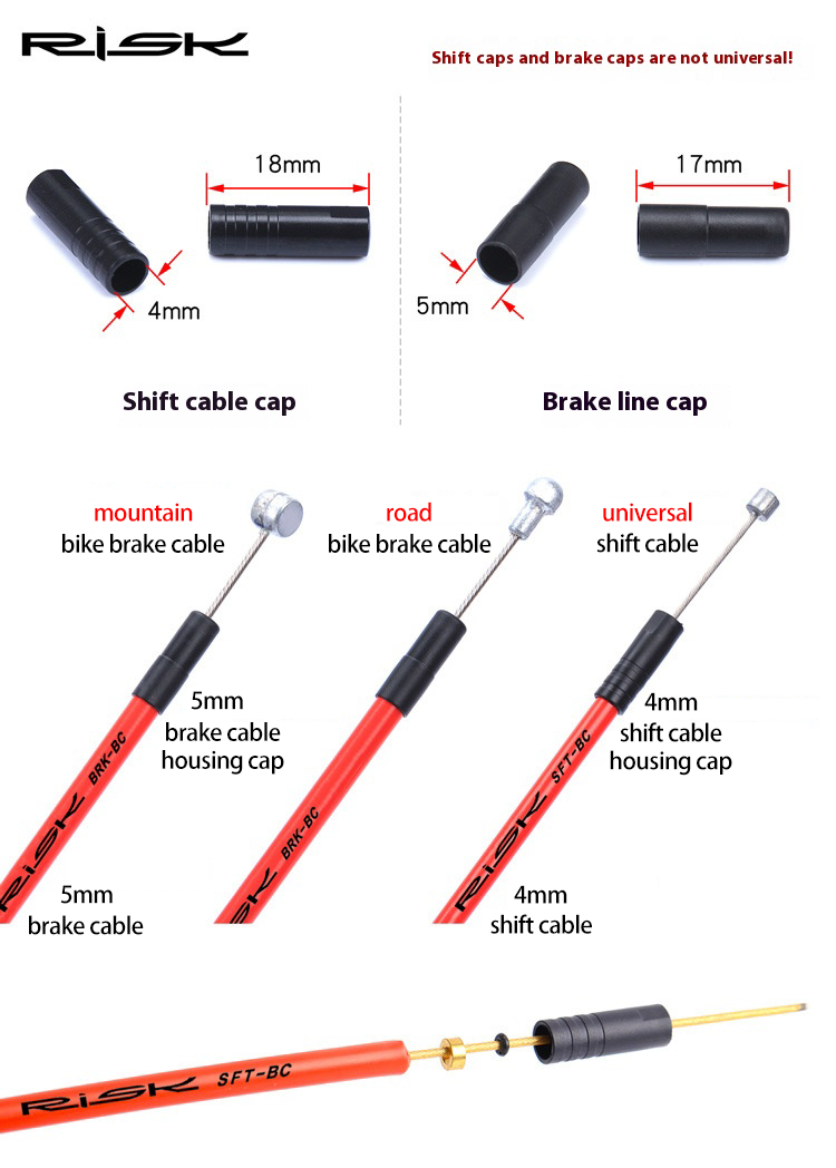 RISK Parts Mountain and Road Bike Plastic Cable Housing Cap Shift/Brake Cable End Caps 4/5mm Outer Tube Dust Cover RC104/RC313