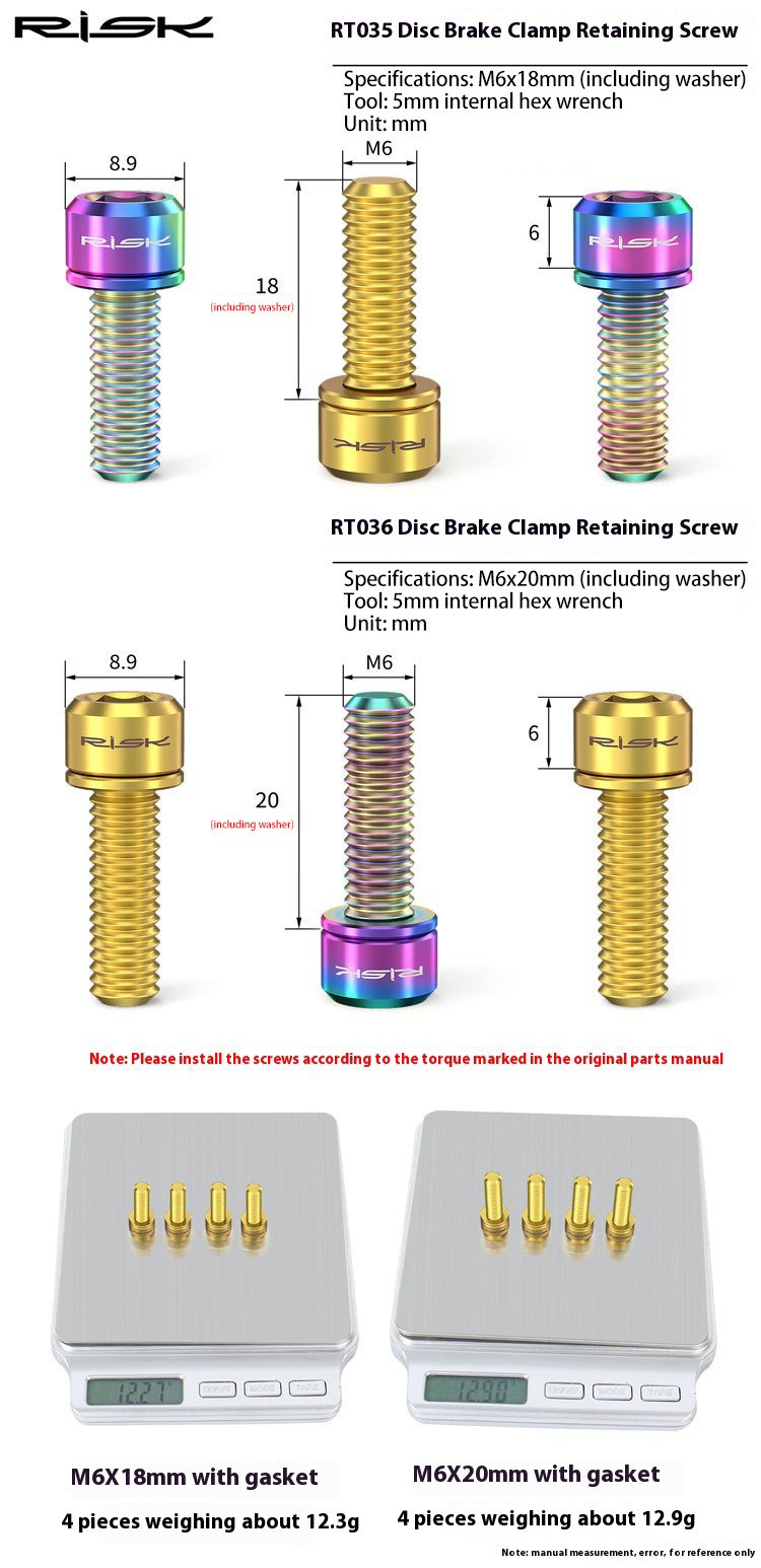 Net Weight: M6*18 + Washers (4 pcs) approx. 12.3g, M6*20 + Washers (4 pcs) approx. 16.4g
