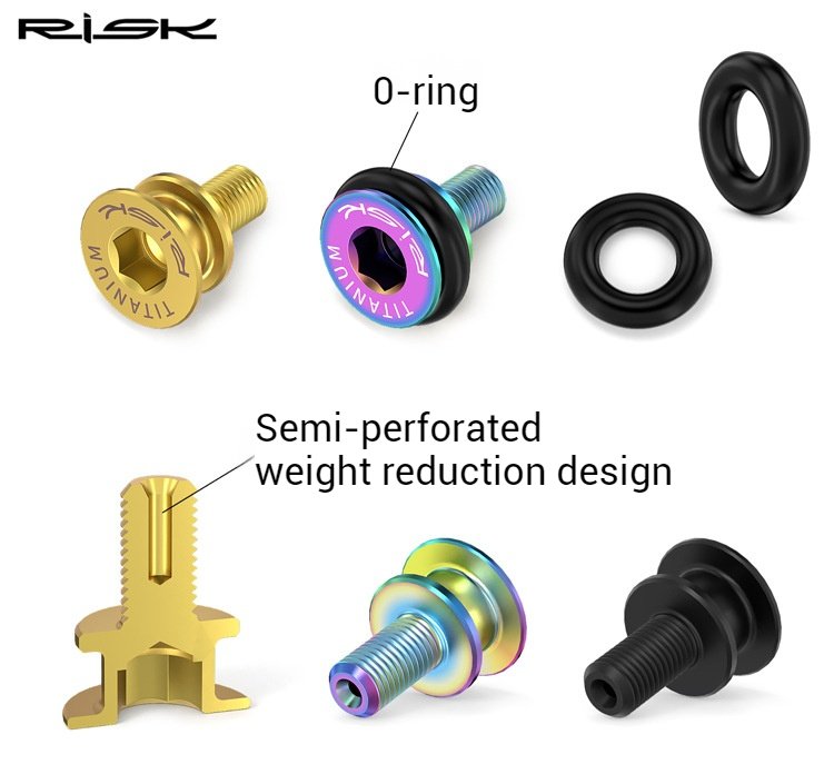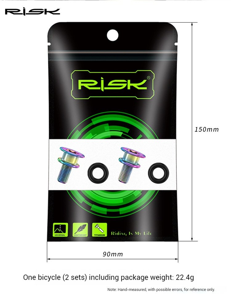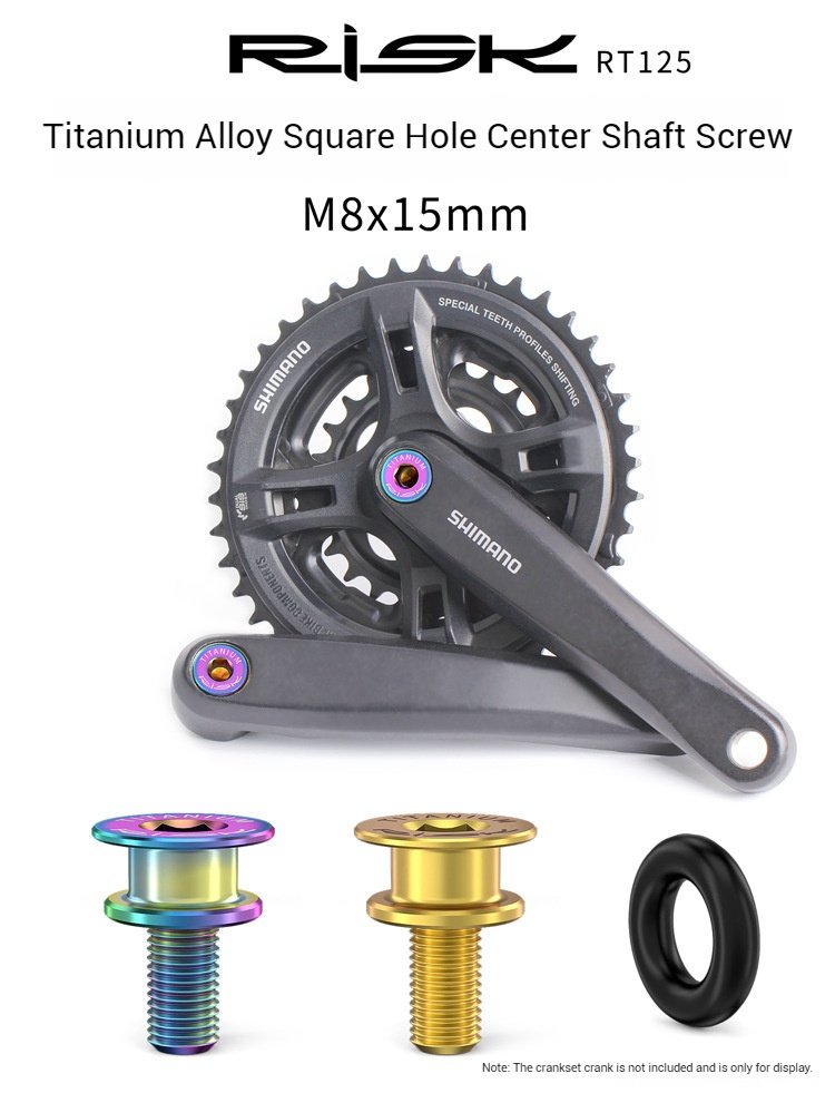 Brand: RISK Material: Titanium Alloy Specifications: M815 Model Number: RT125 Color Options: Gold/Iridescent/Black Packaging: 2 Sets/set, branded bagged Packaging Dimensions: Approximately 15*9*3cm Net Weight: Approximately 18.3g/set Gross Weight: Approximately 22.5g/bag Application: Waterproof fixing screws for square hole middle axles, cranksets, and cranks