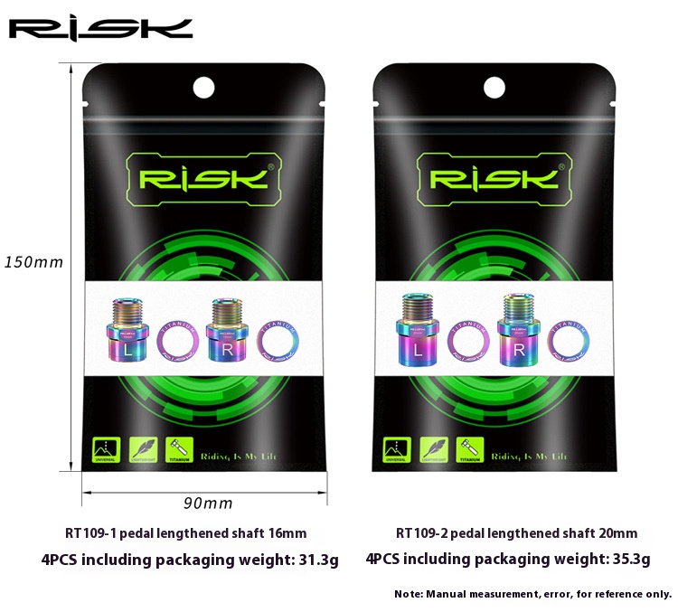 Packaging: 2 extended axles + 2 washers per set, branded bag