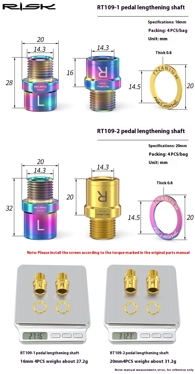 Net Weight: 16mm: Approximately 27g/set, 20mm: Approximately 31g/set