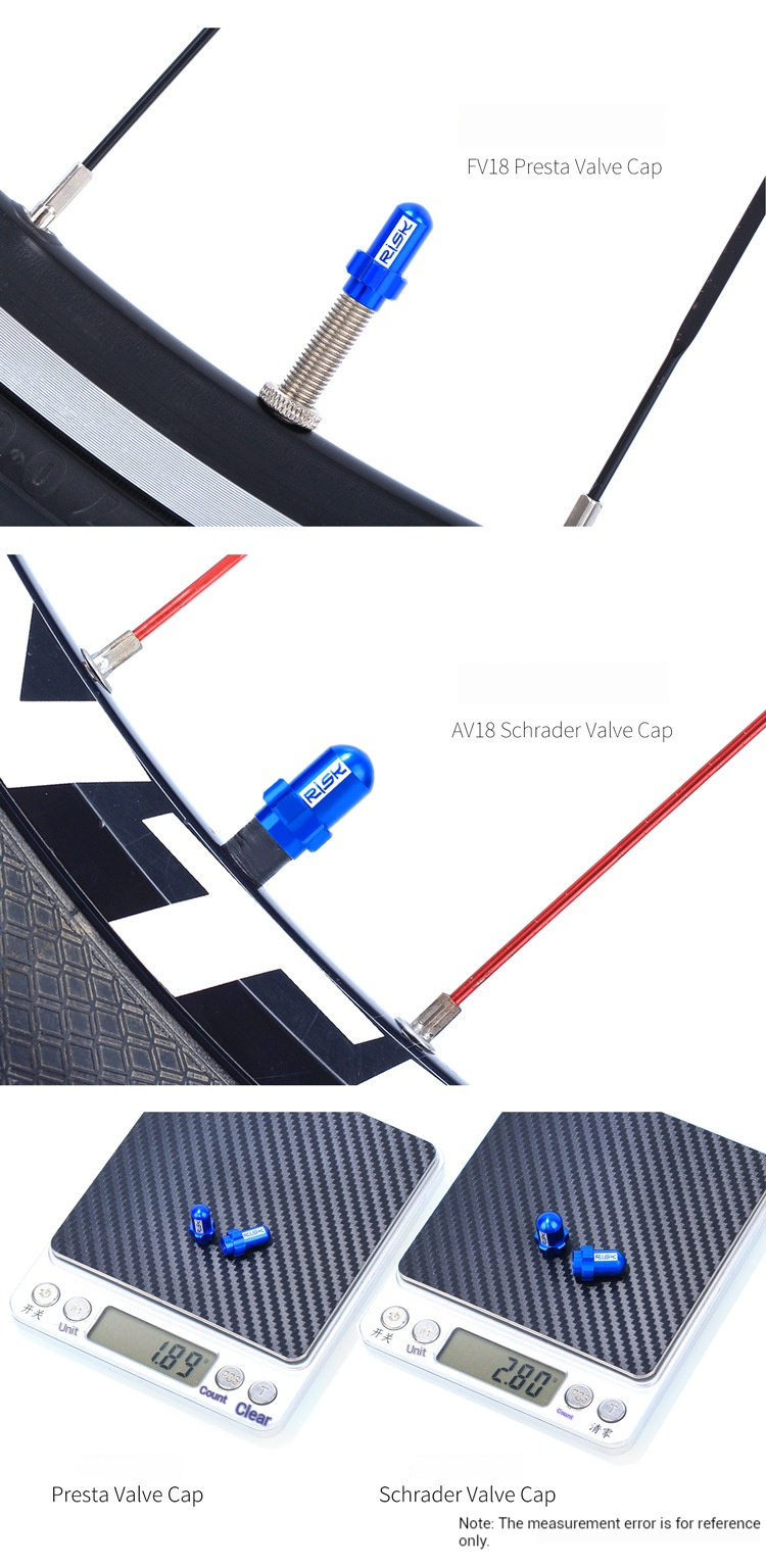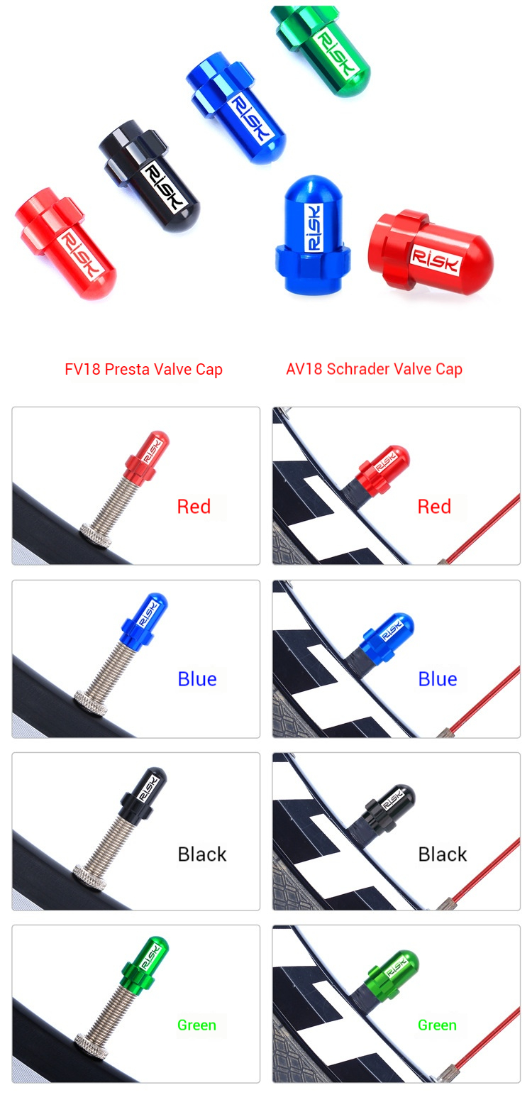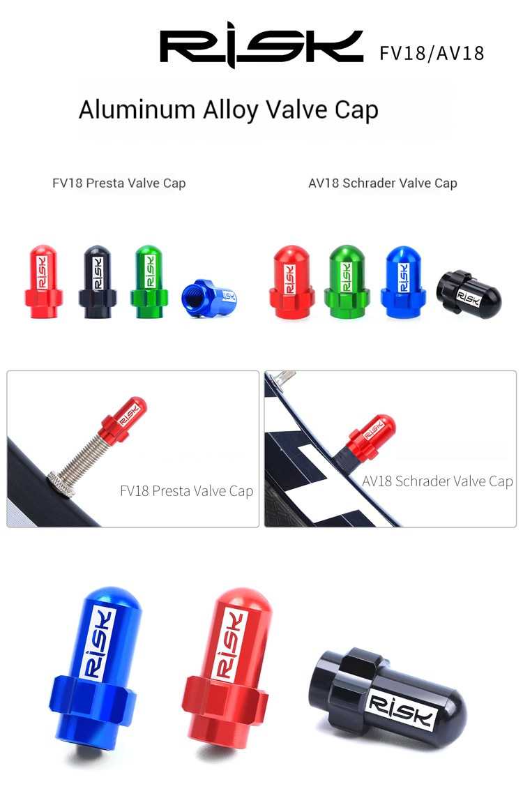 Home»Products» RISK Parts Road Fixed Gear and Mountain Bike Presta Valve Schrader Valve American French Valve Dust Cap with O-Ring 7075 Aluminum Alloy FV18 AV18