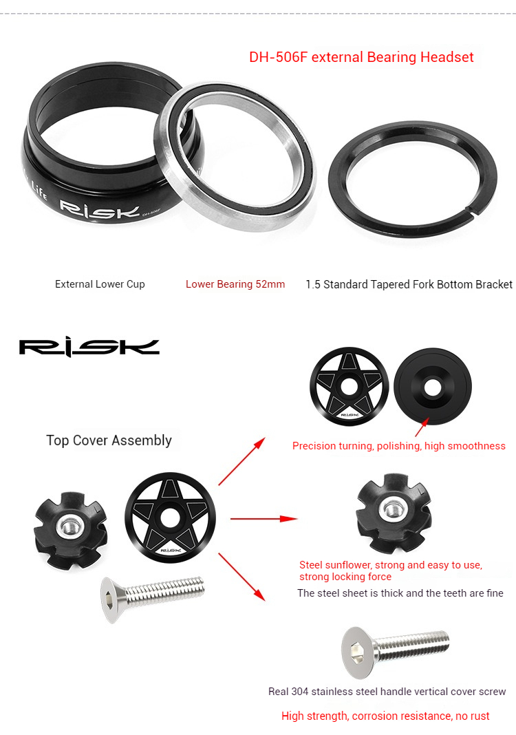 Name: RISK Standard Tapered Frame Double Bearing External Cup Headset