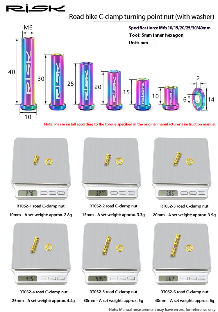 Specifications: M6x10/15/20/25/30/40mm (includes one washer)